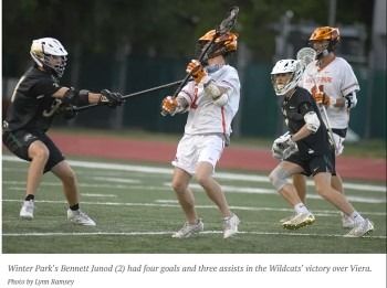 Bennett Junod added four goals and three assists for the Wildcats (17-3), who will host Vero Beach. The Indians advanced by beating Lake Howell 14-2, in the Region 2 final Saturday. It will be a rematch of a March 18 match at Vero Beach, which the Wildcats won 17-8.