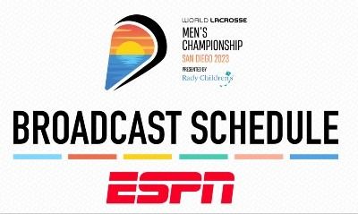 ESPN will serve as the exclusive television partner of the upcoming 2023 World Lacrosse Men’s Championship presented by Rady Children’s Hospital in San Diego, California. All 107 games of the world championship will be carried on ESPN platforms in the U.S., and in a record 185+ territories via ESPN International.