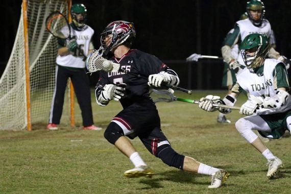 On a chilling night, Chiles traveled to Lincoln to see if they could return the favor by defeating the Lincoln on their own turf. Chiles took the first faceoff but a passing miscue turned the ball over to Lincoln. From there, Junior attackman Caleb Gehres (#19) rolled behind the cage and quickly found junior Bryce Correa (#4) in front of the net for a quick score at 11:01 into the first quarter. Chiles lost the next faceoff but their defense held up. Within three minutes into the game, Logan Short (#3) reeled behind the cage and passed to Sam Hartmann (#26), standing alone in front of the cage. Lincoln’s goalie Josh Roberts (#16) managed to make the save, but Chiles earned the ground ball. Logan Short dodge from behind the cage only to hit top post. Josh Sirdevan (#12) recovered the ball, but passing miscue turned the ball over. On the clear, Lincoln’s goalie threw a pass over the midfield line but it was intercepted by Chiles’ defenseman, Quinn Lassiter (#10). Lassiter quickly moved the ball to attackman Trent Fewox (#21) who found Sam Hartmann (#26) in front of the cage for Chiles first tally of the game at 8:10 in the first quarter.