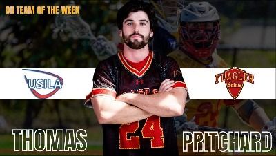 LOUISVILLE, Ky. – For the second week in a row, the Flagler College men’s lacrosse team placed a player on the USILA / Dynamic Team of the Week, with attacker Thomas Pritchard receiving the honor, the organization announced Tuesday.