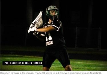 Brown stopped a record 57 shots — out of the 60 that he saw — in a 4-3 win over Taravella (Fla.) on March 31. The game went seven overtimes, making it also one of the longest games on the books.