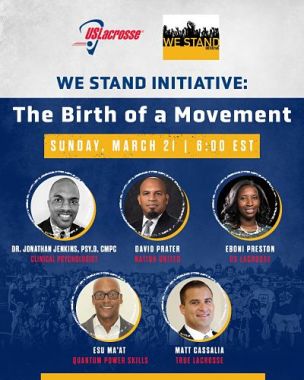 US Lacrosse and the Nation United Foundation are holding an open Zoom discussion on Sunday night at 6:00pm to launch the We Stand Intiative to combat racism in lacrosse.
