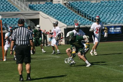 Eastside won the opening face off and held possession for the first minute until Oak Hall found their defensive footing. Thad Spiker stripped the ball and Evan Moorehouse picked up a GB and cleared it.