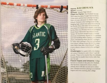 Atlantic High/Delray Beach junior attackman Kai Cheslack appears in the Mar/Apr edition of Delaray Beach Magazine, talking about his experiences and what lacrosse has taught him.