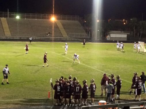 A beautiful evening at Jack Taylor Stadium for a great game of lacrosse. The Fletcher Senators put up a decent fight hosting the St. Augustine Yellowjackets, but lost 4 to 8.The St. Augustine rally started in the first quarter just seven minutes into the game when Yellow Jacket Jordan King scored. After two more St Augustine goals, Fletcher’s Wesley Boyd answered with a bullet into the net from close range.After another St Augustine score (the second for Mateo Trumble) Fletcher’s Graham Van made a shot that got deflected into the goal.It was 2 to 5 at halftime. Fletcher showed some promise, playing strong defense throughout the remainder of the game. The Senators fought hard and goalie Patrick Wendell made 12 saves. However, St. Augustine did a good job of matching goals and running out the clock to preserve their lead.Fletcher travels to Bishop Snyder @ 6pm on Tuesday.