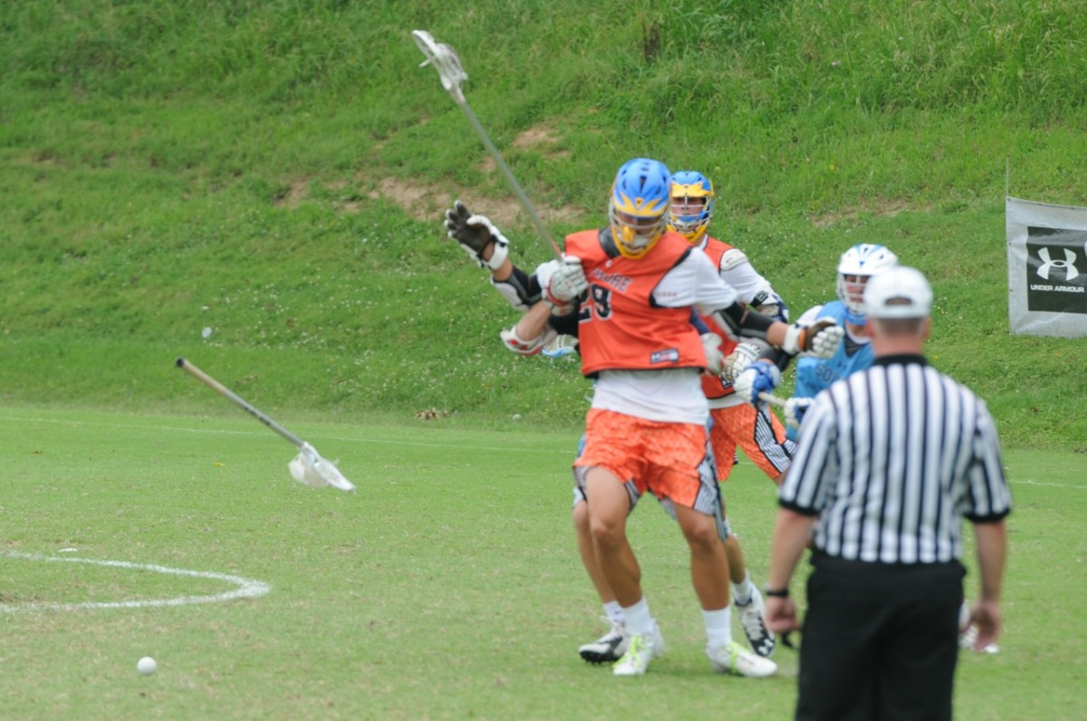 Nothing like a yard sale with the game on the line. Griff, like all the Lake Highland players (and Coach Spaulding) played in the National High School Lacrosse Showcase in between the Under Armour games. We don’t know how they had anything left in the tank.