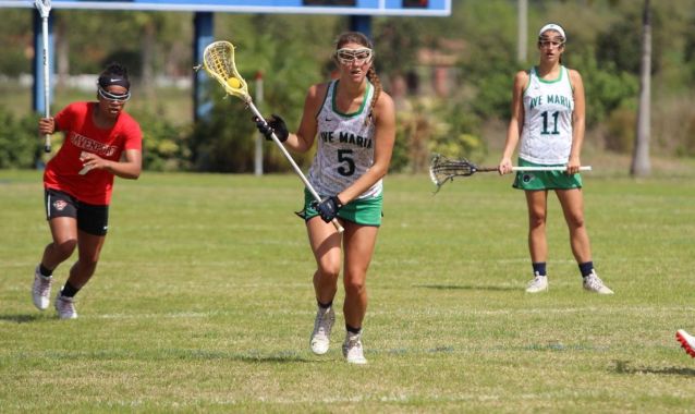 AVE MARIA, Fla. — The Ave Maria women’s lacrosse team began their home slate on Wednesday morning against third-ranked Davenport (Mich.) The Lady Gyrenes fell to the visiting Panthers 22-14.