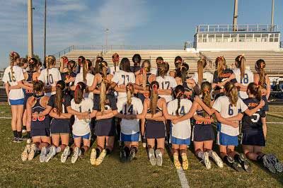 The girls’ lacrosse teams from Benjamin High School and Martin County High School chose to honor Seaton Hill University’s Kristina Quigley at their game. Each girl wore Seaton Hill’s colors of crimson and gold ribbons in their hair, and stood side by side together before the game as one.