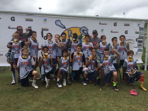 Above – FCA SoFlo wins U13 ChampionshipDelray Beach, FL – This Father’s Day Weekend was a fun one as the inaugural Florida Lacrosse Cup faced off at the Seacrest Lacrosse Fields in Delray Beach. Seven division of boys and girls matched up for two days of tough competition on the grass mixed in with a fun and interactive tournament village and a Major League Lacrosse (MLL) Florida Launch game.Snipers Lacrosse U9 Title Game MVP, Tyler, showing off the goodiesThe fields opened early Saturday as games began at 8am. Players arriving for warmups as early as 6:30 from programs all over the Sunshine State quickly noticed they were in for a few new wrinkles at this tournament. Every goal on every field was provided by Boca Raton’s own Gladiator Lacrosse. Their Casey Powell Signature Edition black goals with heavy gauge black netting stood out immediately. Gatorade, a prominent tournament sponsor, provided hydration stations with their sports drink and water on every sideline while shading the scorers’ tables with large orange tents and the scorekeepers at the Florida Lacrosse Cup were the third referees adding an extra official to every game while allowing referee groups to rotate one member out of the sun every game – a much appreciated aspect in their day which translated to better managed games for the players. All officials were under the direction of tournament referee director, Michael Bolger.Mitch was named MVP of the HS B title game! Congrats!The Ballistic program from Ft. Myers had an early game against the Florida Aces, formerly the Wellington Lacrosse Club. Monsters Lacrosse came down from Sarasota to take on a different Aces club and two area stalwarts, FCA SoFlo and Florida Elite rounded out the first trio of matches on the day. Soon followed players from clubs like Braveheart, the SOFLA Sharks, Lady Swashbucklers and Choas as the girls HS division began. The World Lacrosse Foundation team in their final tune up for the World Series of Lacrosse in Denver, CO, arrived for their late morning first match against Florida Elite.U13 finalists Florida Aces (formerly Wellington Lacrosse Club)As the players were beginning their weekend so were the vendors. One clear goal of the event organizers was to create an interactive space for companies to show off their wares. Two of the tournament sponsors paired up to create one very popular exhibit when Gladiator Lacrosse and True got together juxtaposing demo models of the entire line of True lacrosse shafts with Gladiator’s goals and bouncebacks for players to really get a good feel for both company’s products. Adding to the fun was a DYG Max-It unit to measure the speed of player’s shots and Rukket Sports provided the safety backstop. Cascade and Maverik Lacrosse was set up not far away with more demo models of their gear and Rukket portable goals. Maverik rep Chris Keating soon found himself in the midst of some 2 on 2 pickup games. Simax Sports brought their on-the-spot custom apparel exhibit to the venue making tournament tees that allowed people to add their own flair. SKLZ, a company known far more in the soccer, football and baseball worlds, set up their training gear for players to use as a warm-up zone and recovery area. MacWear Lacrosse brought their usual spectacular selection of equipment, apparel and accessories. Throw in the buzz around the Florida Launch tent and the tournament village was bustling all weekend.Saturday night all tournament players and coaches received tickets to the Florida Launch game at FAU Stadium against the Charlotte Hounds. And while the weather cooperated for the tournament on Saturday, it seemed bound and determined to have its way that evening. Storms brought heavy rains, wind and lightning to South Florida and drove spectators under cover. Tournament teams had been looking forward to playing an exhibition on the field prior to the pro game but their matchup was cancelled when the delays went past the first hour. Benefitting from the squalls were the coaches and VIPs and the Coaches Social in the stadium Recruiting Room who were dry and comfortable with a catered dinner and visits from Launch coaches and players. Not to leave out the fans upstairs, both Launch and Hounds players spent a lot of time mixing with the fans, signing autographs and making life long memories for the young ones. The continued storms forced the first game cancellation in the 16 years of Major League Lacrosse but at least fans got the silver lining of being a part of history.Championship Day on Sunday brought about a lot of smiles. The rains from the previous night had cleared and sun dried the fields quickly for some fierce play. After winding down pool play, the HS A Boys were the first division to hang gold medals around their neck. There Florida Elite completed an 18-0 summer season with its fourth tournament title. Title game kept coming fast and furious after that and with each one came a round of finalists presented with silver medals and champions receiving their gold. Teams were given pieces of Mogul Mesh to award to their weekend leaders and the MVPs earned custom white and gold composite shafts made by True exclusively for the winners of a few select tournaments across the country this summer. Boca Bandits took home HS B honors. The World Lacrosse Foundation captured the U15 division. FCA SoFlo won U13 while Tony Lowe’s Snipers program garnered gold in both the U11 and U9 groups. The ladies title was earned by Braveheart Lacrosse coached by 2016 NCAA champ Olivia Ferrucci from the University of North Carolina at Chapel Hill.Without question the Florida Lacrosse Cup established itself as a destination event in the landscape of summer ball in Florida. A well-run tournament that provided participating programs with good value for their entry fee and great fun for the players and families both on and off the field.