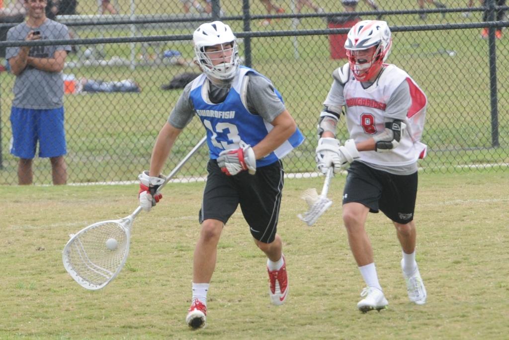 Mostly a St. Andrew’s roster, we saw a a lot of fine play. Face-off senior Alex Newhouse is one of the best in the state and on Saturday he had an acrobatic backwards over the head goal which was certainly one of highlights of the weekend. The attack unit of Peter Dykas, Sam Baker and Nick Diamond (all juniors) was strong. Nick’s twin brother, midfielder Davis, is a special player, feeding and scoring with style. Shane Logan and Alex Heatzig were solid on defense and Harris Feldman in goal was athletic and showed good decision making all weekend.