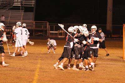After Ben Yetman drew JHS within one in the fourth the home crowd came alive and the momentum clearly swung to them. (A side note – this game was played alongside the JHS baseball team playing on the next field. There were hundreds at the lacrosse game and maybe about 40 at the baseball game. Take note local newspapers! That means you Palm Beach Post; you need to think about assigning some of your resources to the event that actually draws the crowds . . .) That momentum carried them through the entire period and Jupiter had a number of chances to win the game before the overtime period but the SA defense stayed stout and Etcheverry made the saves when needed. On the other end Scheele made a few key saves too when SA finally got a few chances to regain the lead.