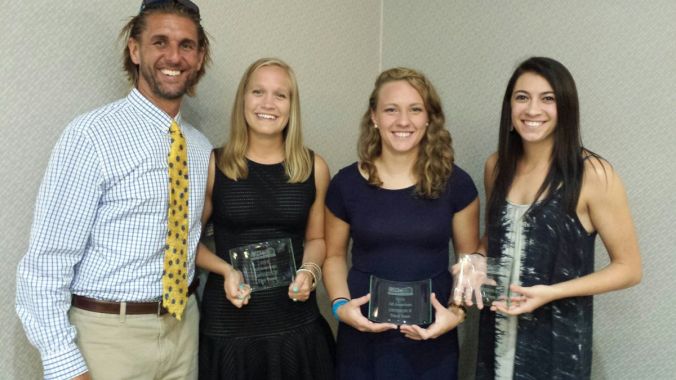 Above – Rollins College Coach Dennis Short and players Tyler Thomas, First Team Division II All American, Chelsea Pinneke and Kris Coppolino both Third Team All Americans taken at the awards banquet last Saturday night in Philadelphia